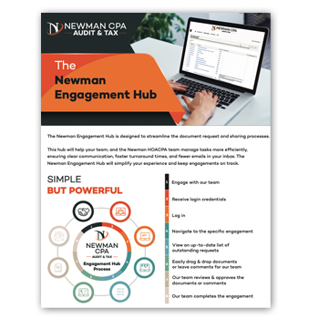This portal will help your team, and the Newman HOACPA team manage tasks more efficiently, ensuring clear communication, faster turnaround times, and fewer emails in your inbox. The Newman Engagement Hub will simplify your experience and keep engagements on track.